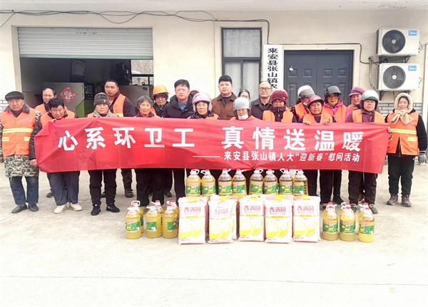 2026年2月10日,新春佳节即将到来之际,来安县张山镇人大会同滁州乐邦蔬菜配送有限公司组织开展了一场暖心的慰问活动,为坚守在一线的困难环卫工人们送上新春的祝福与关怀。